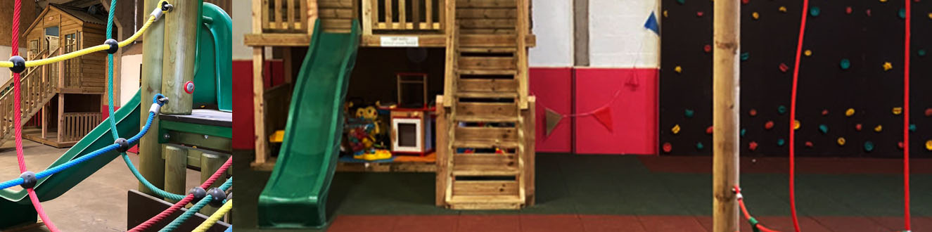 Specialist safety flooring provides the ideal setting to keep your little ones playing safely on our fun activity play equipment, two-storey house, train, mini climbing wall and rope balance. The Playbarn is an amazing setting for birthday parties with packages tailored to your individual requirements.